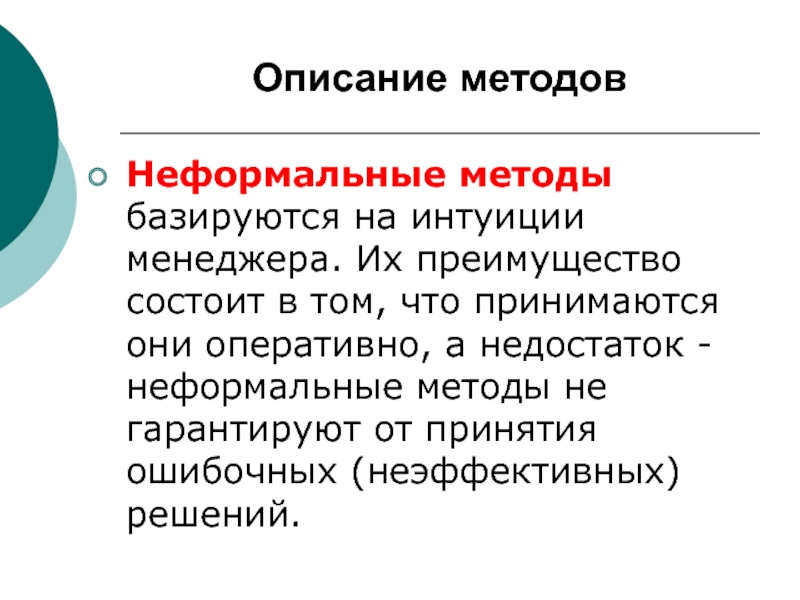 Неформальные методы базируются на интуиции менеджера. Их преимущество состоит