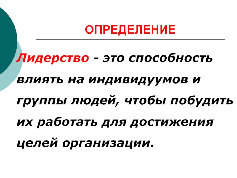 Лидерство - это способность влиять на индивидуумов и группы людей,