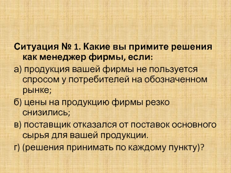 на обозначенном рынке; б) цены на продукцию фирмы резко снизились;