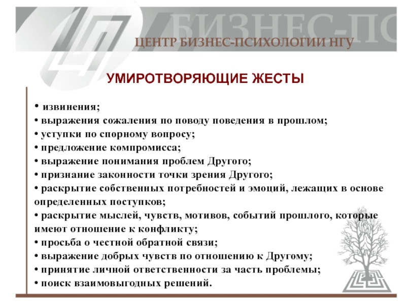 Используйте умиротворяющие жесты, фокусируя внимание на партнерстве.