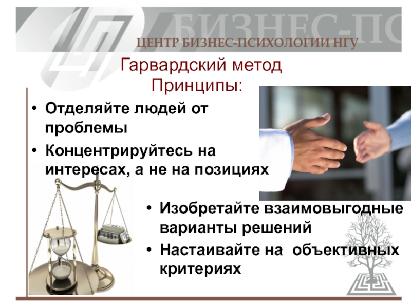 достижение договоренности через согласование интересов.