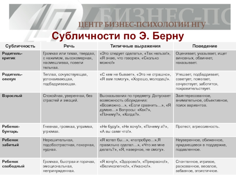 Слайд 70Субличности по Э. Берну