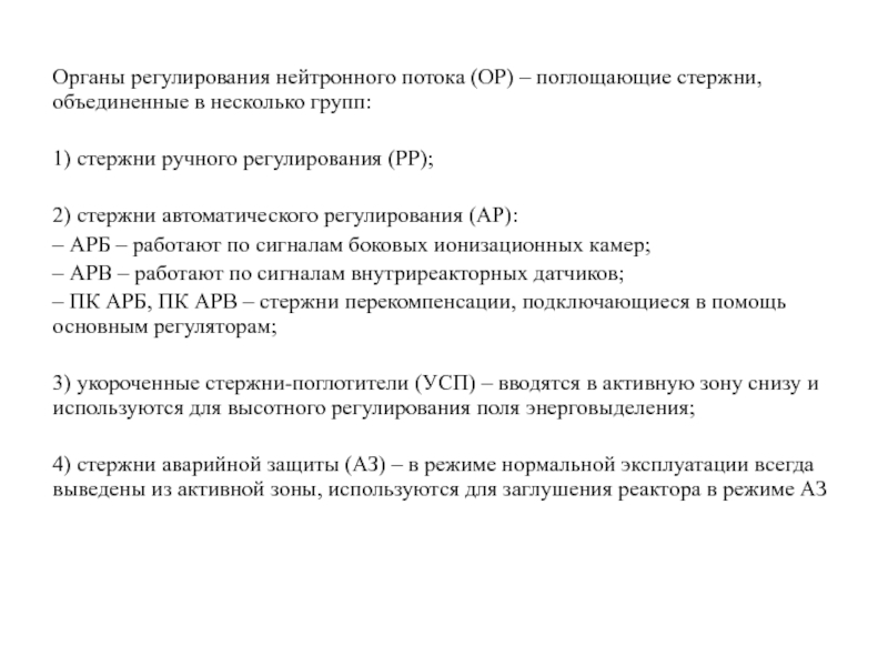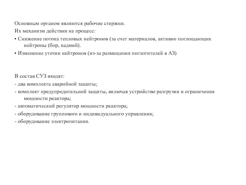 Слайд 38В соответствии с функциями СУЗ поглощающие стержни разделяют на три