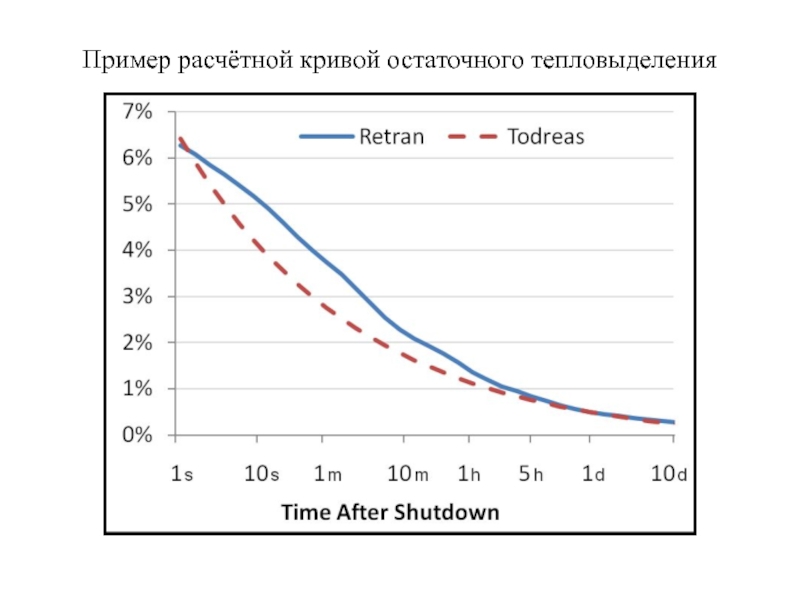 Слайд 26Пример расчётной кривой остаточного тепловыделения