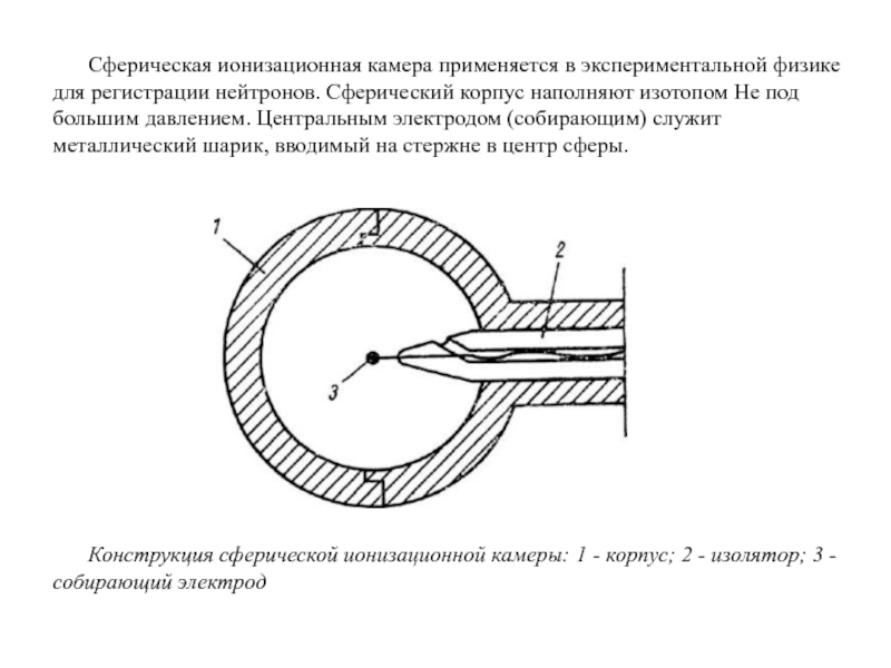 Слайд 35Сферическая ионизационная камера применяется в экспериментальной физике для регистрации нейтронов.