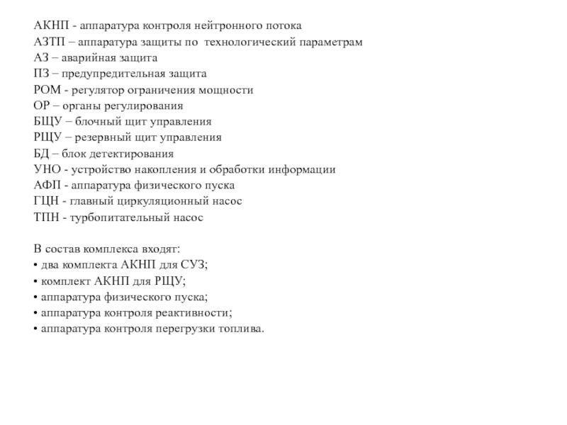 Слайд 6АКНП - аппаратура контроля нейтронного потока