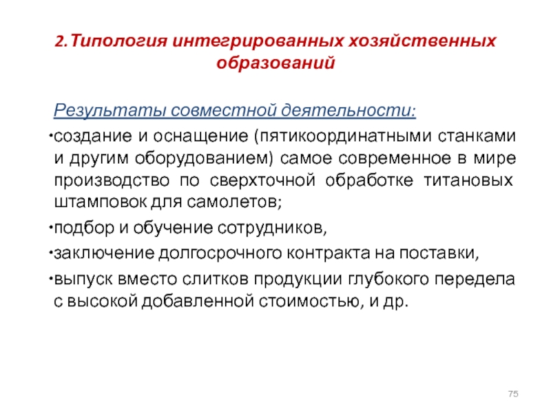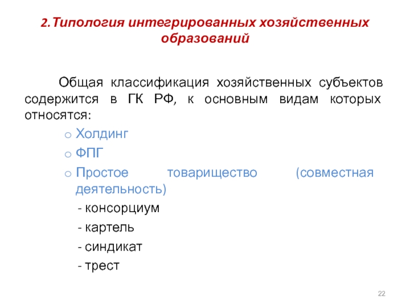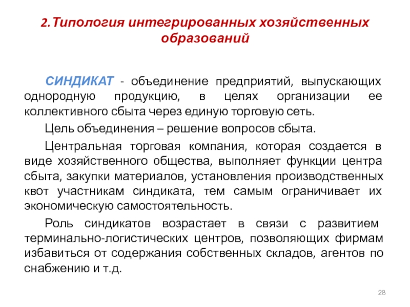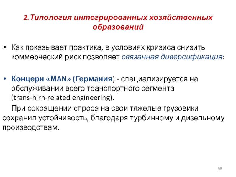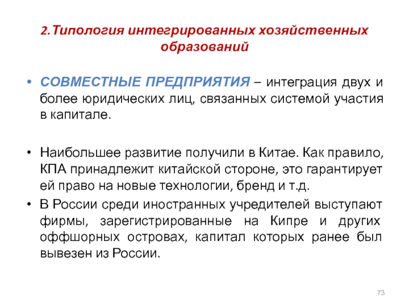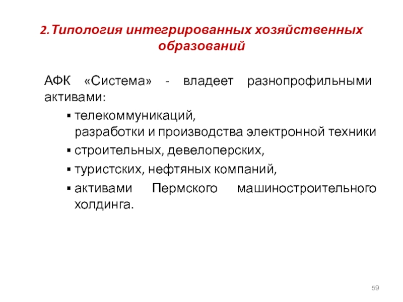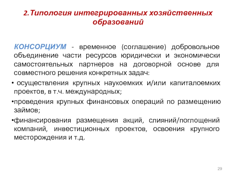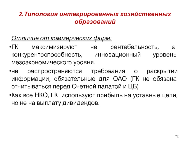 Объединяемые компании сохраняют юридическую и производственную самостоятельность, но оказываются полностью зависимыми от материнской компании, и др.