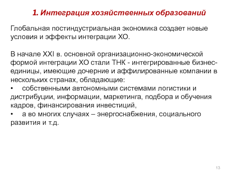 ИНТЕГРАЦИЯ корпораций – означает не просто объединение хозяйствующих субъектов, а:
