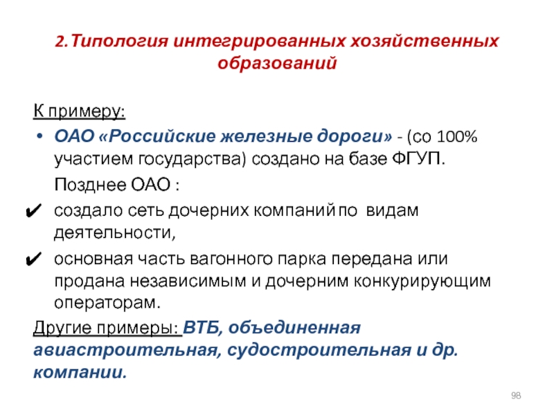 Другие примеры: ВТБ, объединенная авиастроительная, судостроительная и др. компании.