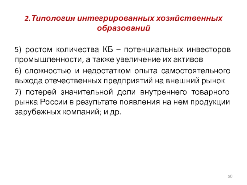 бесперспективность такой формы интеграции, как конгломераты, в связи с невозможностью