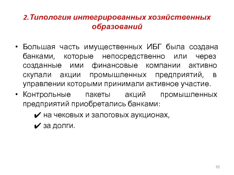 поглощения целой сети разрозненных предприятий, не имеющих никакой производственной общности, но находящихся под единым финансовым контролем.
