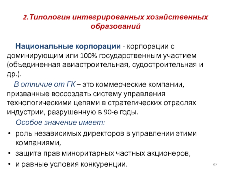 с доминирующим или 100% государственным участием (объединенная авиастроительная, судостроительная и