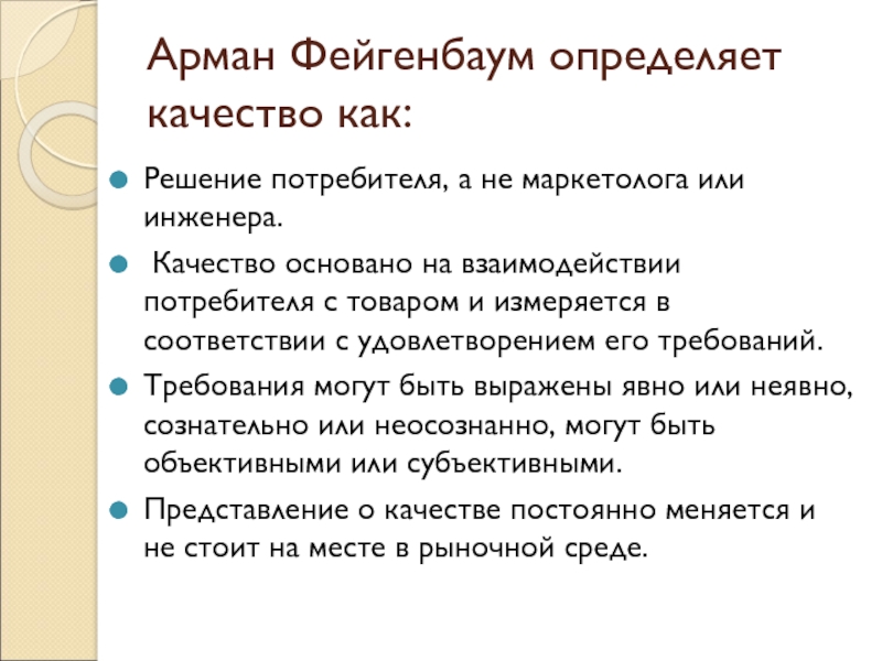 Слайд 15Арман Фейгенбаум определяет качество как: