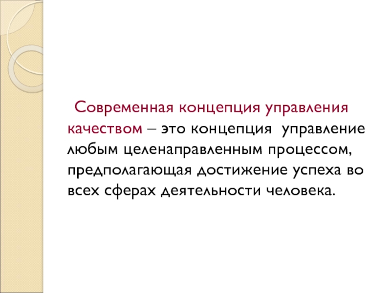 Слайд 2 Современная концепция управления качеством – это концепция управление