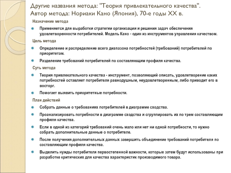Слайд 10Другие названия метода: "Теория привлекательного качества".