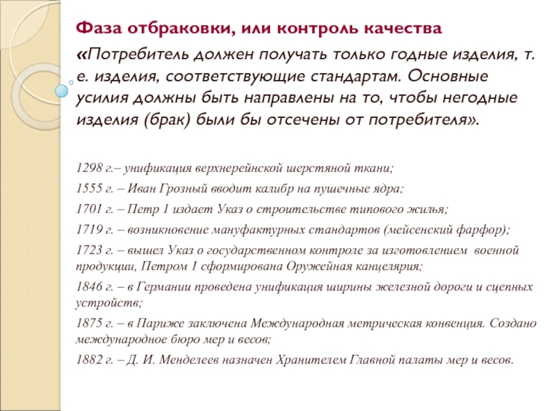 то, чтобы негодные изделия (брак) были бы отсечены от потребителя».