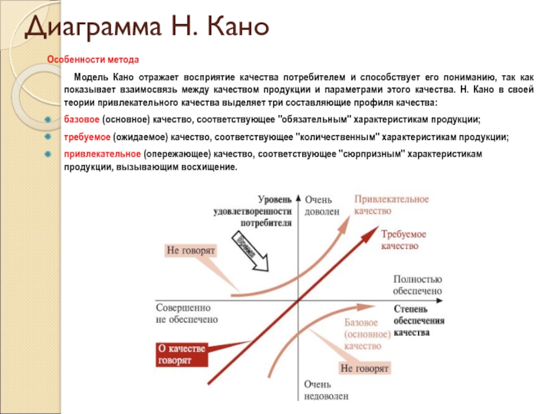 между качеством продукции и параметрами этого качества. Н. Кано в своей теории привлекательного качества выделяет три составляющие профиля качества: