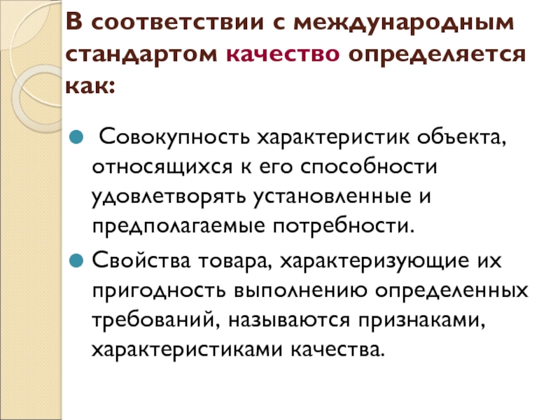 Слайд 13В соответствии с международным стандартом качество определяется как: