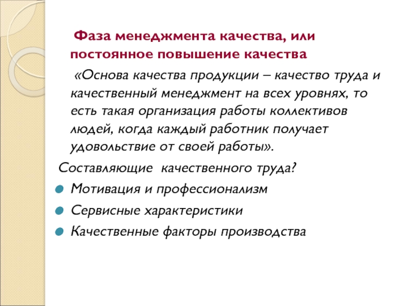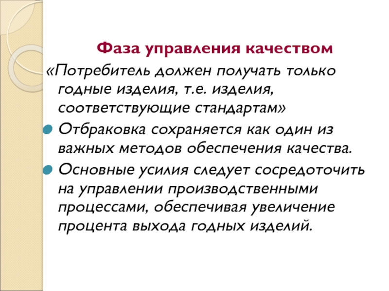 Слайд 7 Фаза менеджмента качества, или постоянное повышение качества