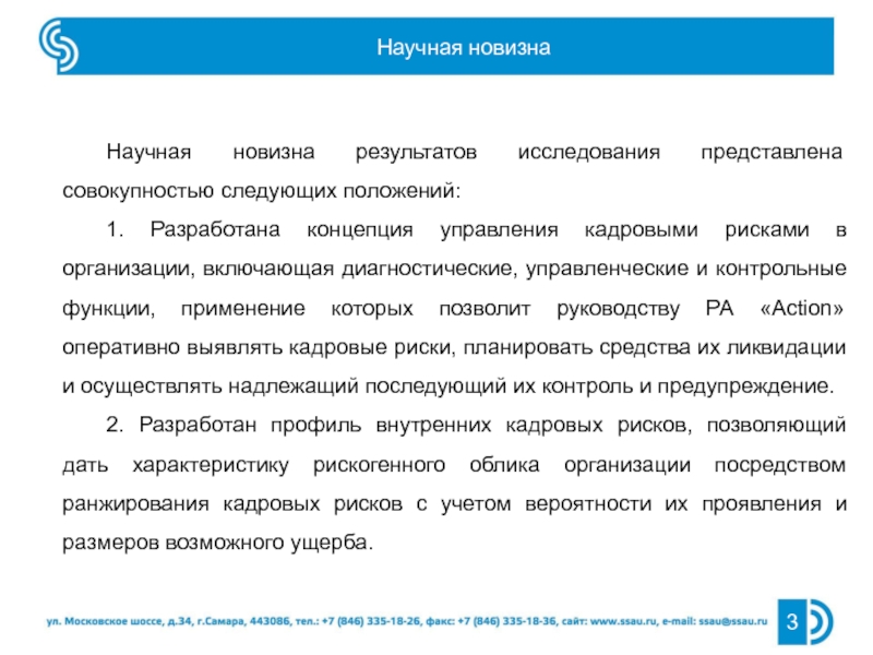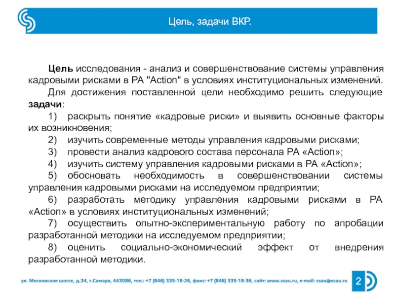 6) разработать методику управления кадровыми рисками в РА «Action» в условиях институциональных изменений;