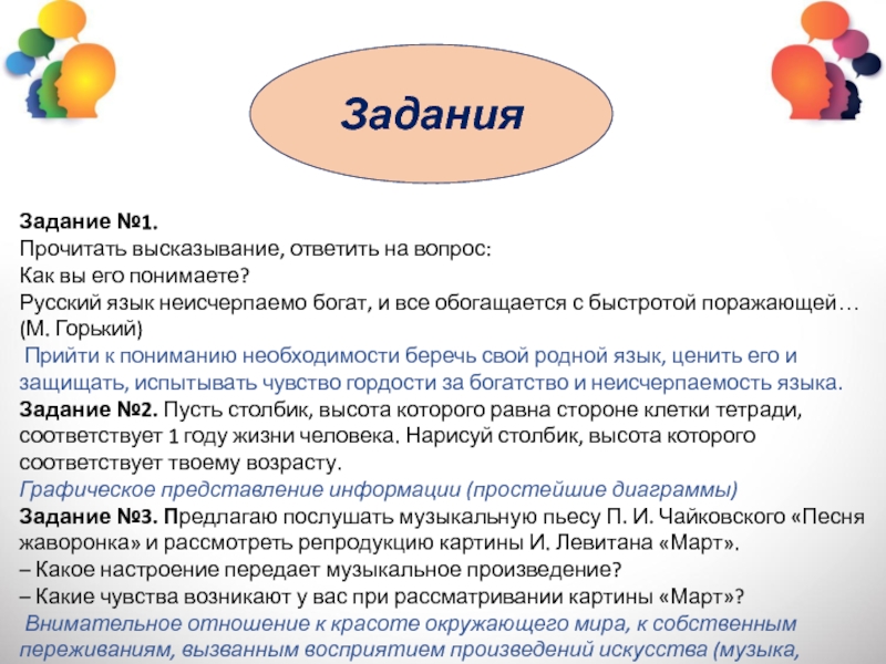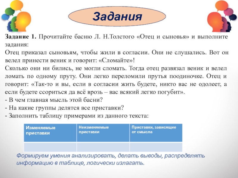 разрабатывают задания по предложенному плану.Или определяют положение каждого типа заданий