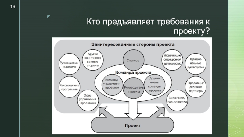Слайд 16Кто предъявляет требования к проекту?