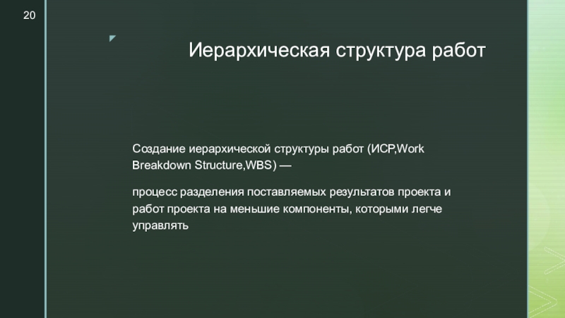 Слайд 20Иерархическая структура работ