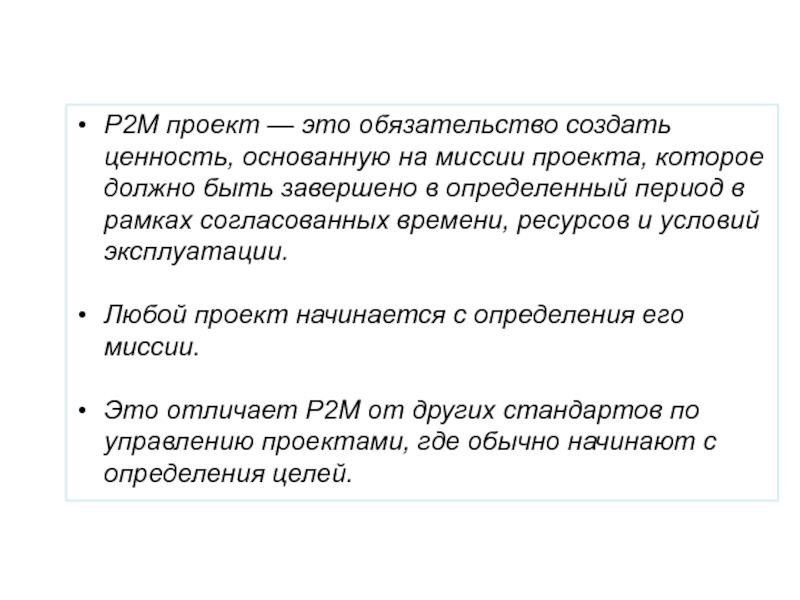 Слайд 127Р2М проект — это обязательство создать ценность, основанную на миссии