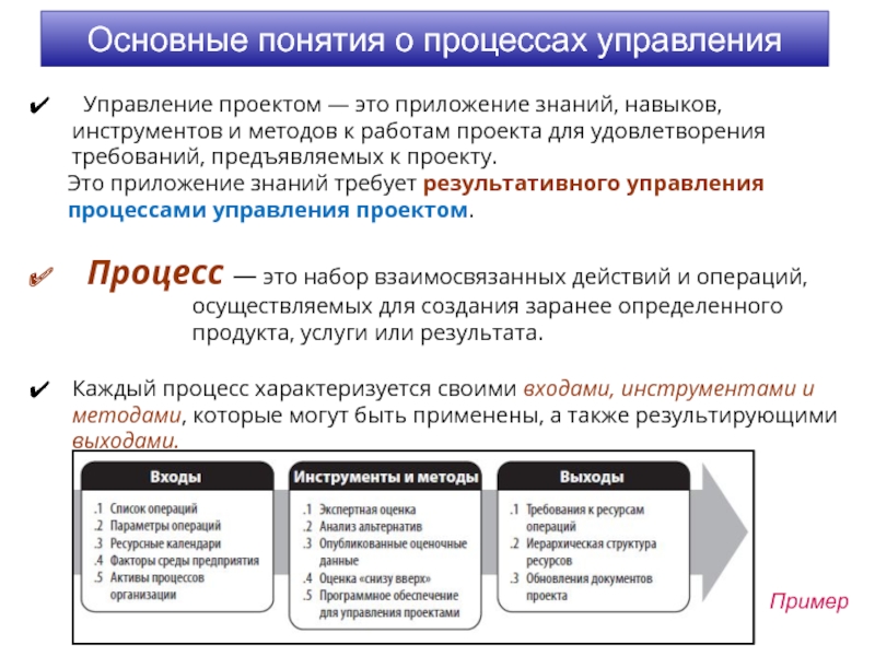 Управление проектом — это приложение знаний, навыков, инструментов и методов к работам проекта для удовлетворения требований, предъявляемых к проекту.