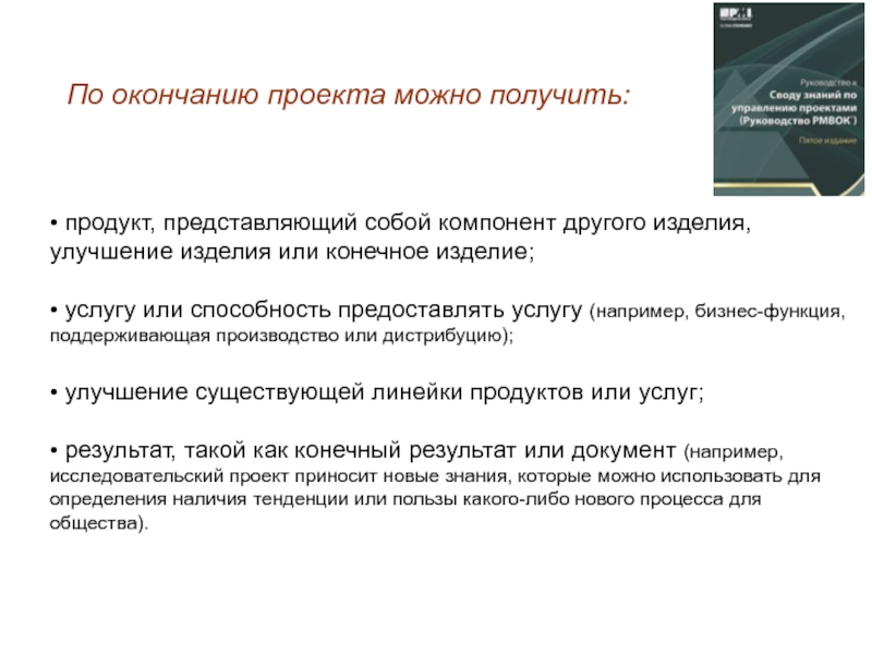 или когда проект прекращается в связи с тем, что его цели не будут или не