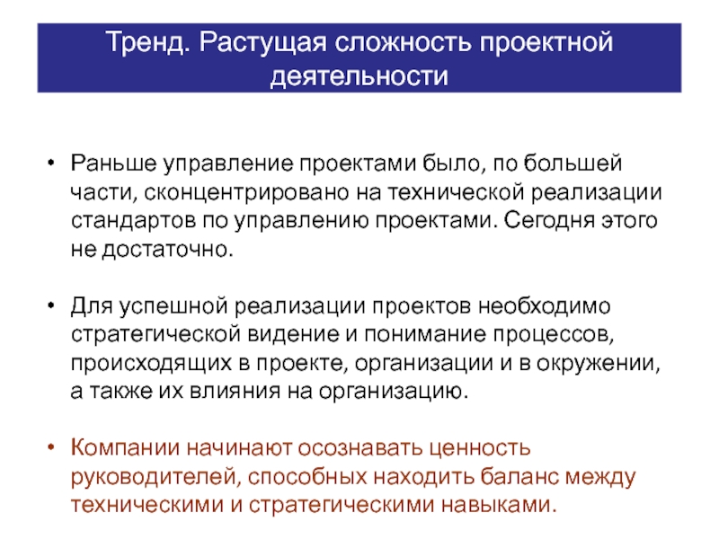 Слайд 6Тренд. Растущая сложность проектной деятельности