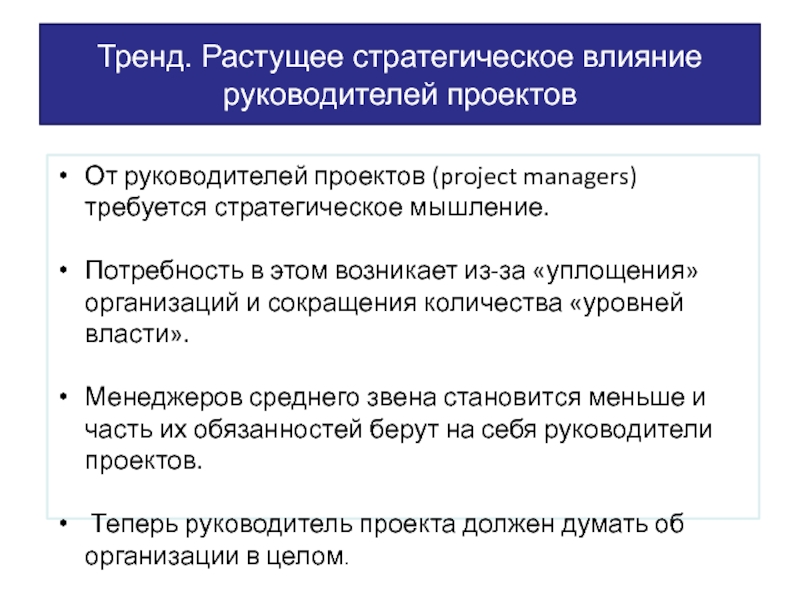 Слайд 4Тренд. Растущее стратегическое влияние руководителей проектов