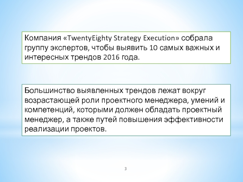 Слайд 3Компания «TwentyEighty Strategy Execution» собрала группу экспертов, чтобы выявить 10
