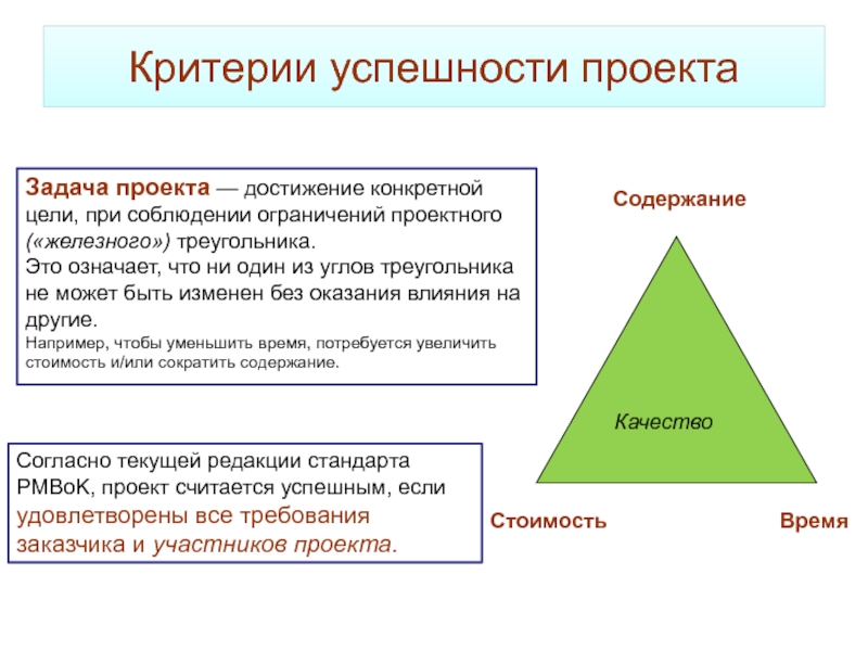 «сроки-содержание-стоимость», сколько быстрое принятие решений и обеспечение положительного влияния проектов