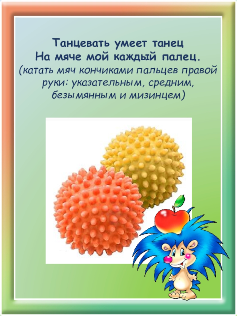 стимулируют кровообращение. Игры с массажными мячиками можно проводить как по телу ребенка, так и используя только руки. Эти мячики легко умещаются в детской ладошке, что позволяет с ними весело играть и развивать мелкую моторику рук.
