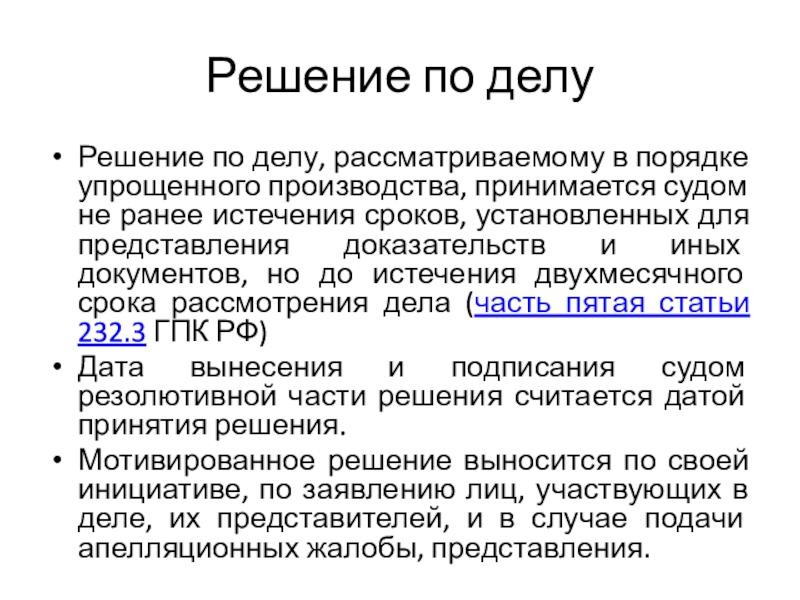 Решение по делу, рассматриваемому в порядке упрощенного производства,