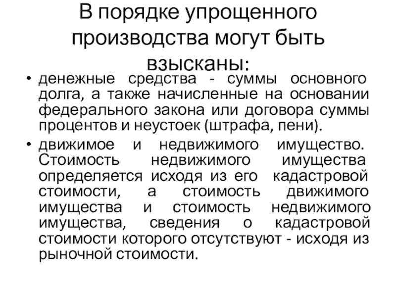 Слайд 6В порядке упрощенного производства могут быть взысканы: