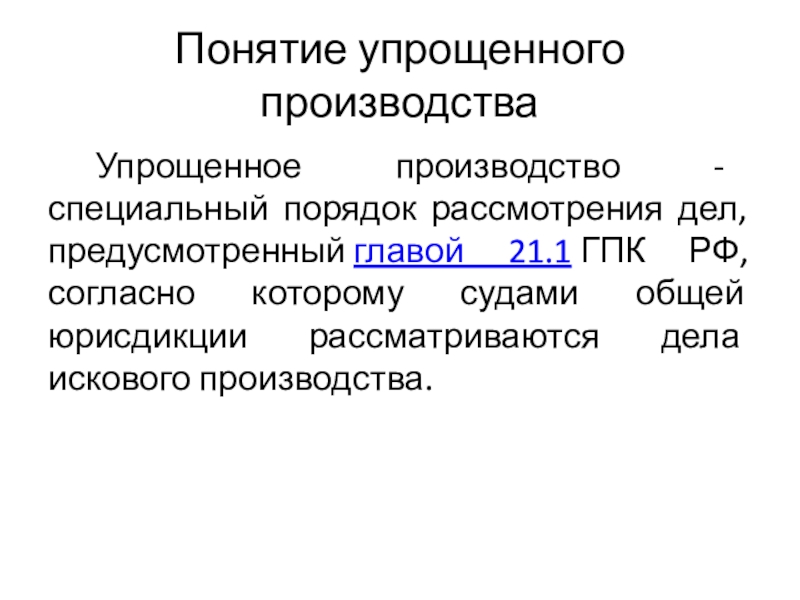 Упрощенное производство - специальный порядок рассмотрения дел, предусмотренный главой