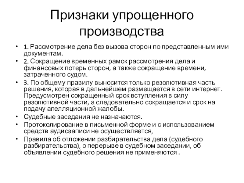 Слайд 3 В порядке упрощенного производства подлежат рассмотрению дела: