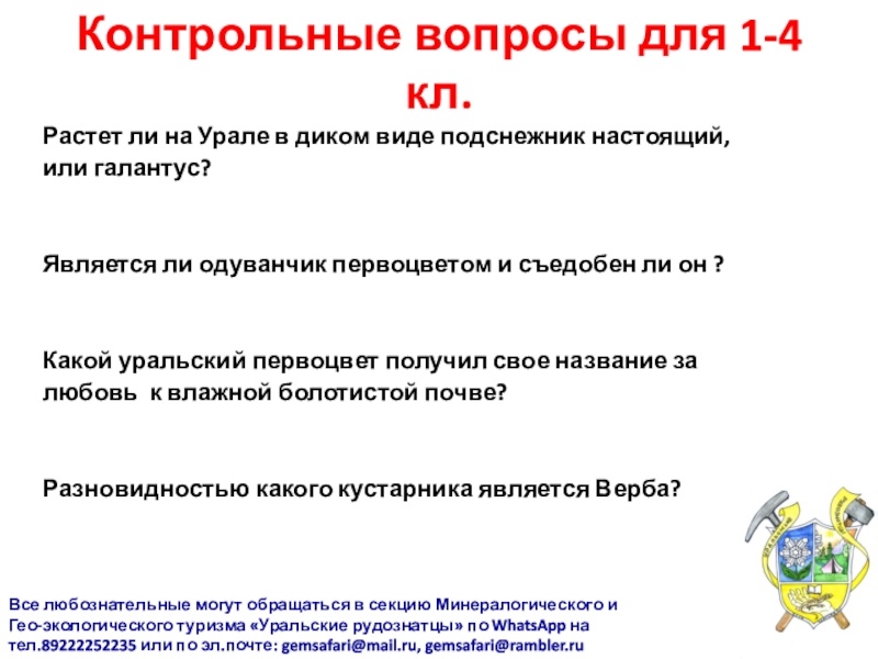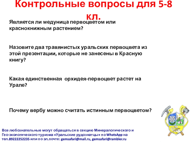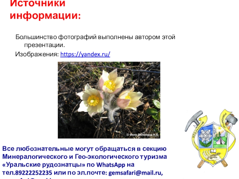 Гео-экологического туризма «Уральские рудознатцы» по WhatsApp на тел.89222252235 или по эл.почте: gemsafari@mail.ru, gemsafari@rambler.ru
