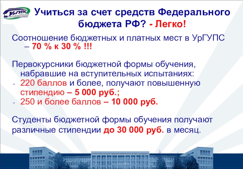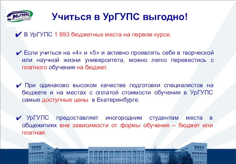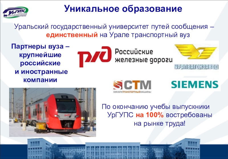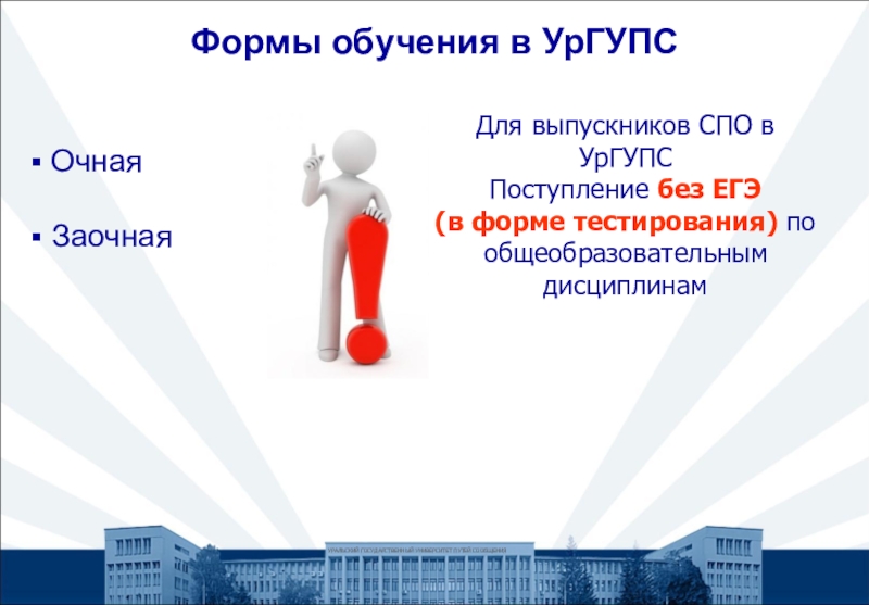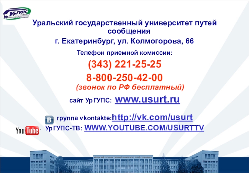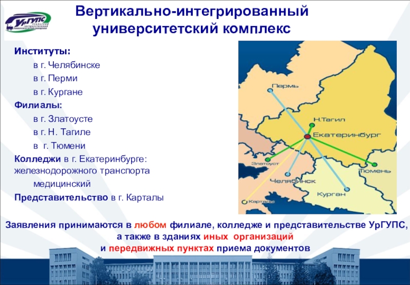 Заявления принимаются в любом филиале, колледже и представительстве УрГУПС, а также в зданиях иных организаций