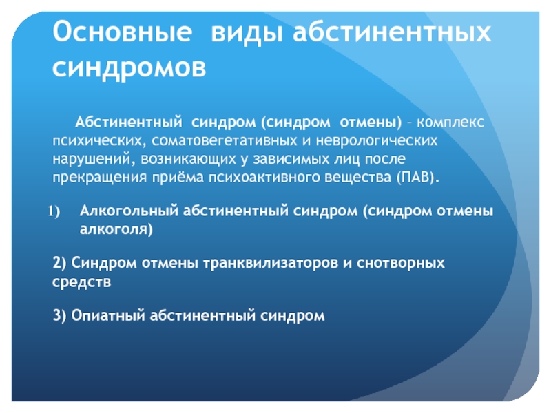 Абстинентный синдром (синдром отмены) – комплекс психических,