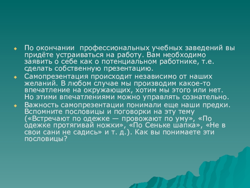 Слайд 2По окончании профессиональных учебных заведений вы придёте устраиваться на работу.