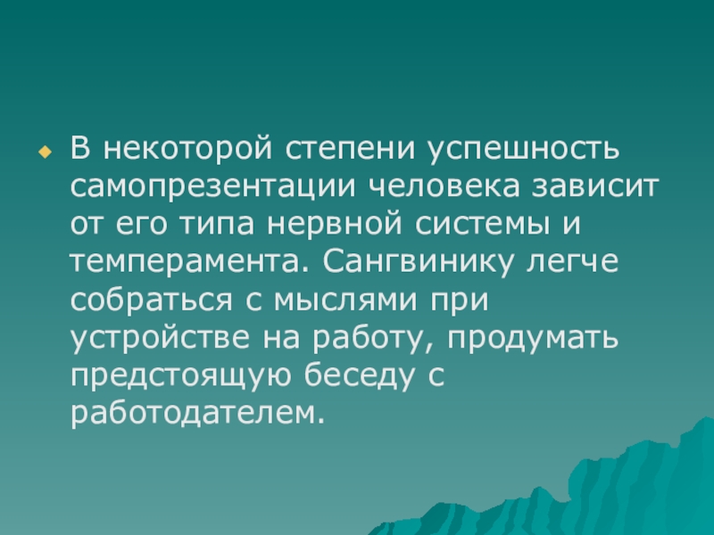 Слайд 4В некоторой степени успешность самопрезентации человека зависит от его типа