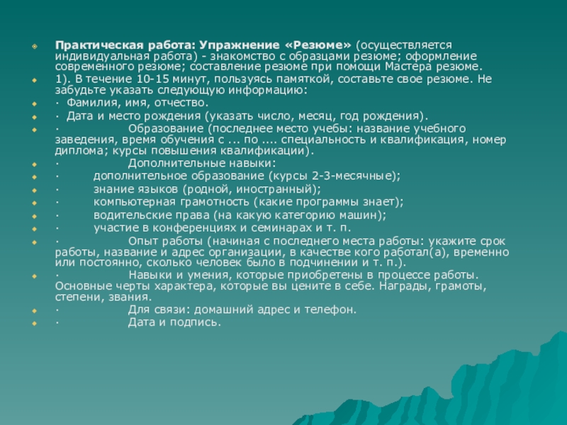 Самопрезентация, составление резюме