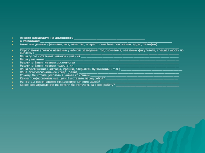 Какое вознаграждение Вы хотели бы получать за свою работу? ___________________________________