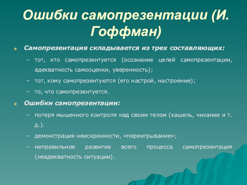 Слайд 56Ошибки самопрезентации (И.Гоффман)