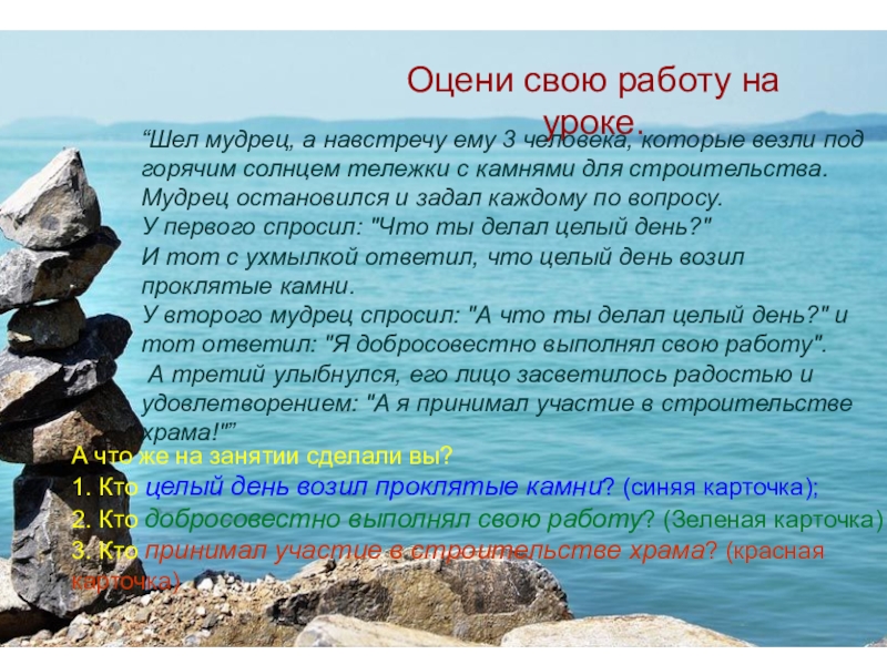1. Кто целый день возил проклятые камни? (синяя карточка);
