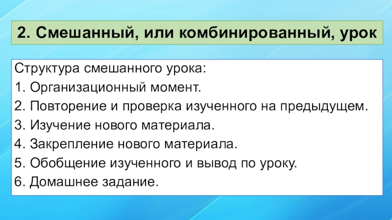 2. Смешанный, или комбинированный, урок