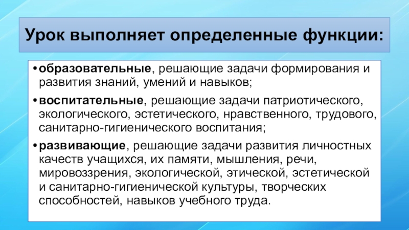 Урок выполняет определенные функции: